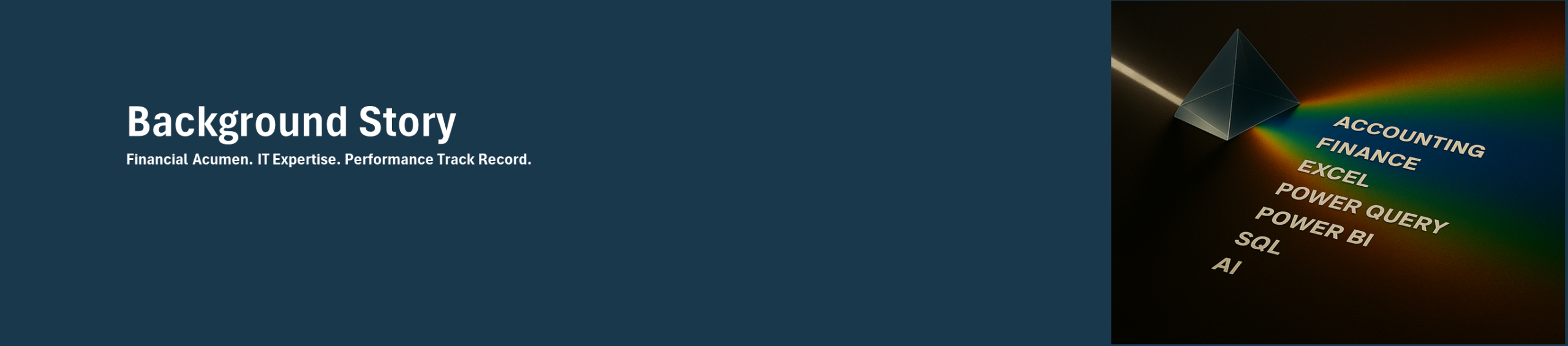 Whether you’re looking to streamline reporting processes, build intelligent dashboards, automate Excel workflows, or model complex financial scenarios I bring the perspective of someone who’s lived in both worlds. I understand not just how to build great technology, but why it matters to your business.